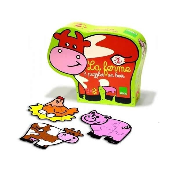 Vilac - Boerderij dieren - 3 houten puzzels in doos